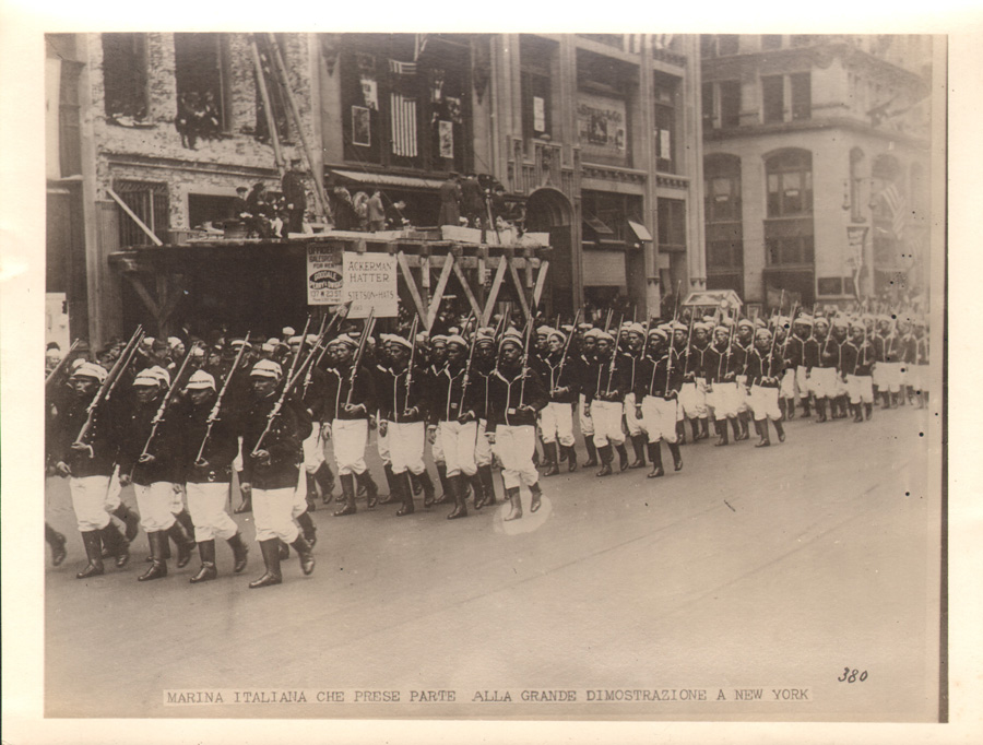 Fotografie della Regia marina militare italiana, con ritratto del comandante in capo delle forze navali, ammiraglio Paolo Emilio Thaon di Revel e delle operazioni militari condotte dalle truppe americane su diversi fronti.
