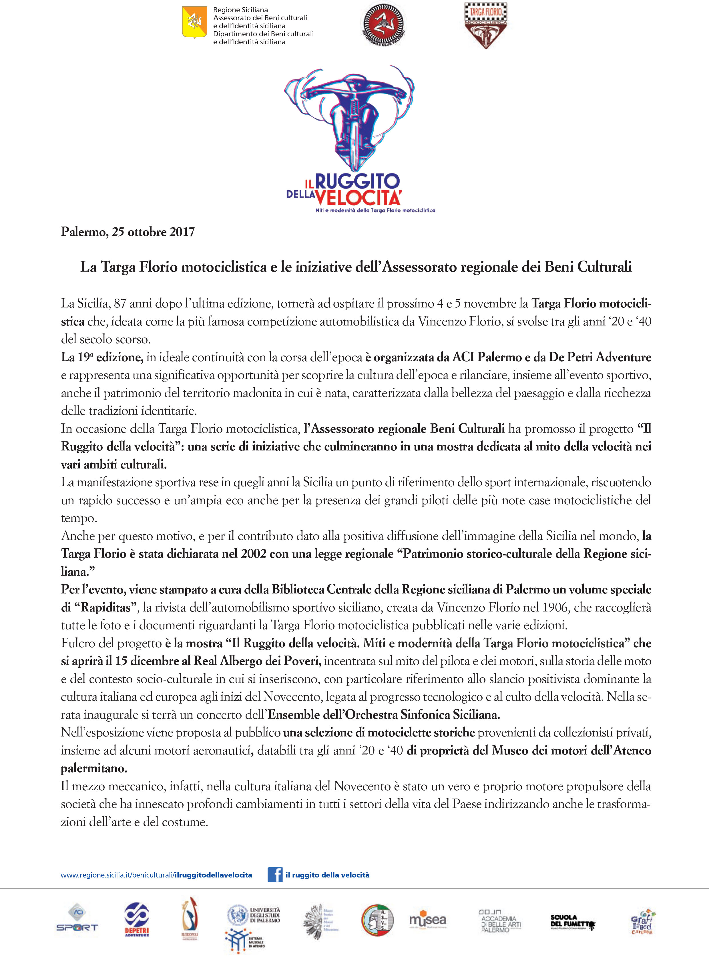 - Comunicato stampa il ruggito della velocità 7 Novembre 2017