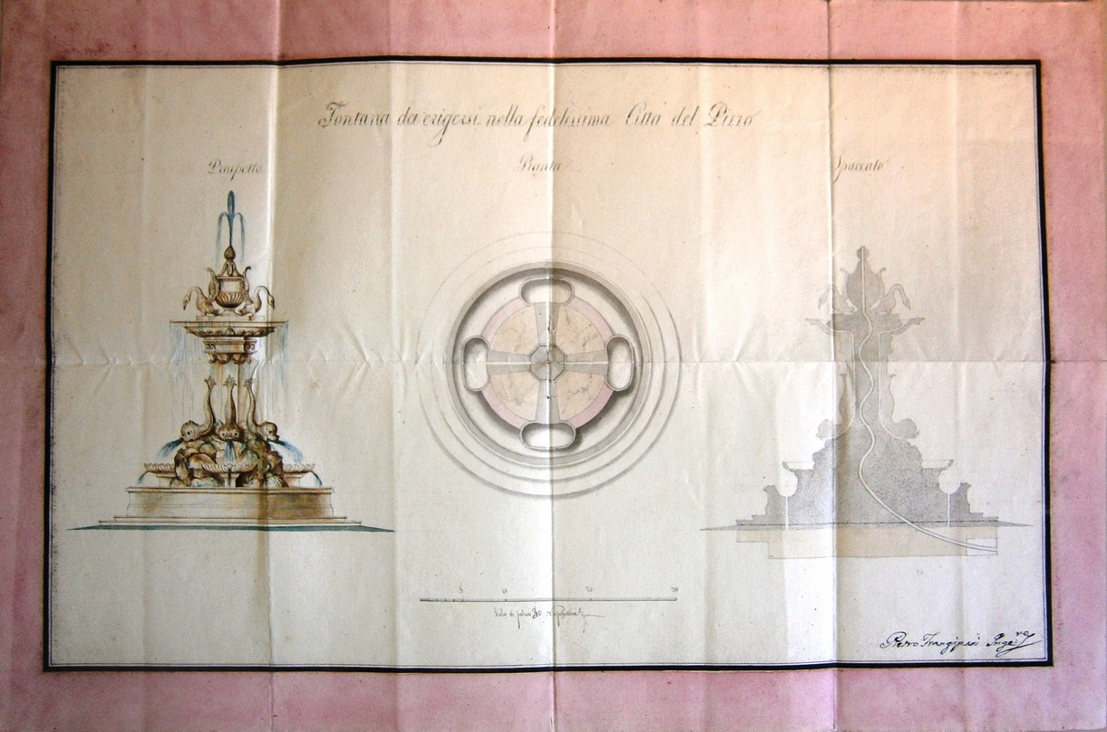 Oggetto: fontana da erigersi nella città di Pizzo, prospetto pianta e spaccato