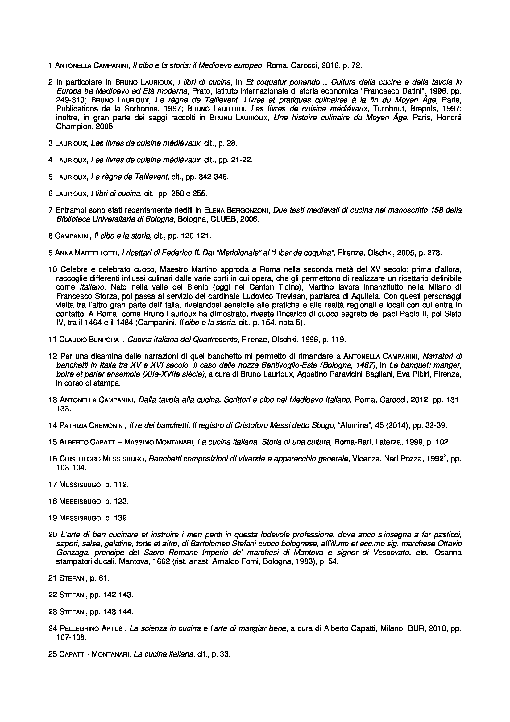 Per cuochi o per maestri di casa che siano, i primi libri di ricette sono quasi tutti anonimi. Anche qui il fenomeno è europeo, non soltanto italiano. Il loro utilizzo è quasi sempre legato al territorio di produzione: la lingua volgare nella quale quasi tutti sono redatti, innanzitutto, tende a inibirne l’“esportazione”. Non si tratta però soltanto di quello: nonostante la circolazione di saperi culinari – che va al di là della loro forma scritta – fosse notevole, leggendo le ricette al di là del titolo si può notare quasi sempre una loro “declinazione nazionale” che le caratterizza, accanto ad alcuni fattori comuni, il più evidente dei quali è l’utilizzo sistematico delle spezie. 6