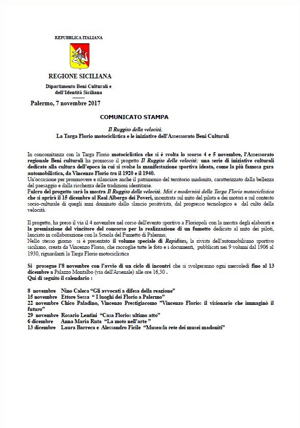 - Comunicato stampa il ruggito della velocità 7 Novembre 2017