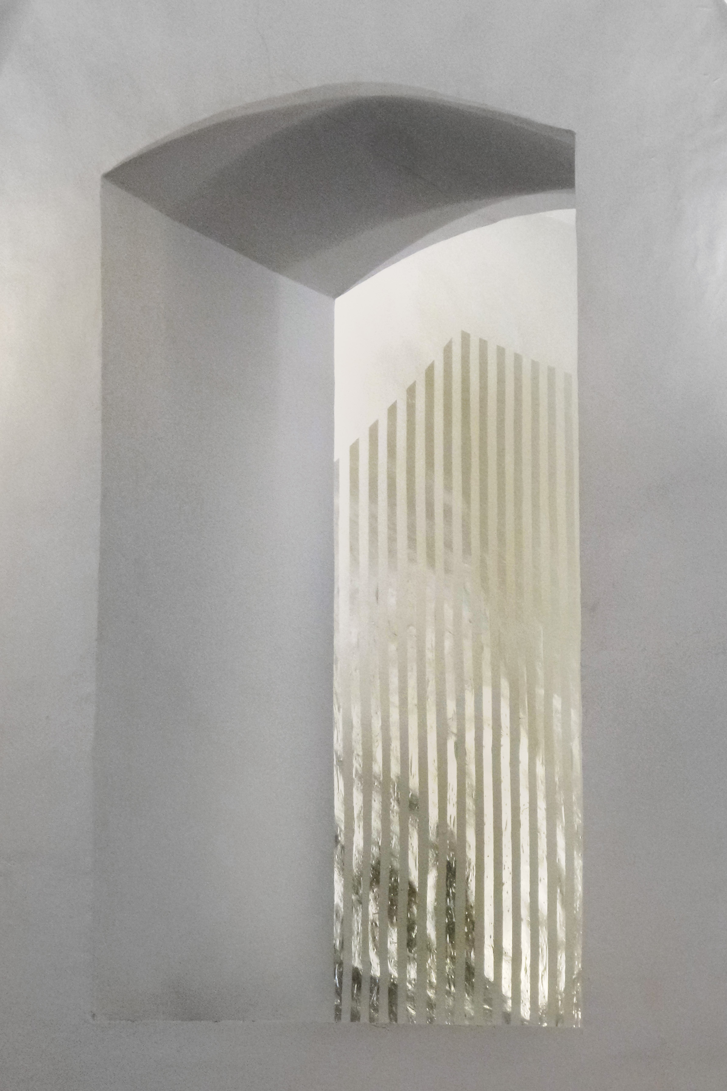 - Gianfranco Maranto, Interspazio P (paesaggio), 2017, nastro metallico su parete, misure ambientali (dettaglio) - foto G. Mineo